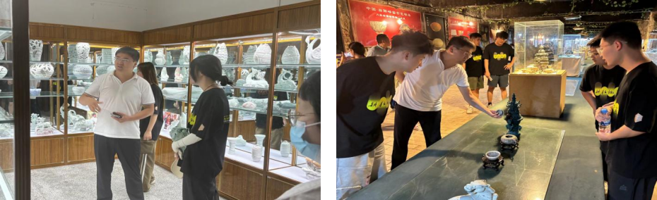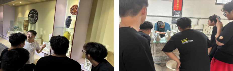 下午,艺绘队全体成员前往当地的绞胎瓷博物馆、绞胎瓷手工制作厂进行参观,对接了著名绞胎瓷手工制作大师柴战柱老师,考察了墙绘地点并与当地交流了墙绘想法。