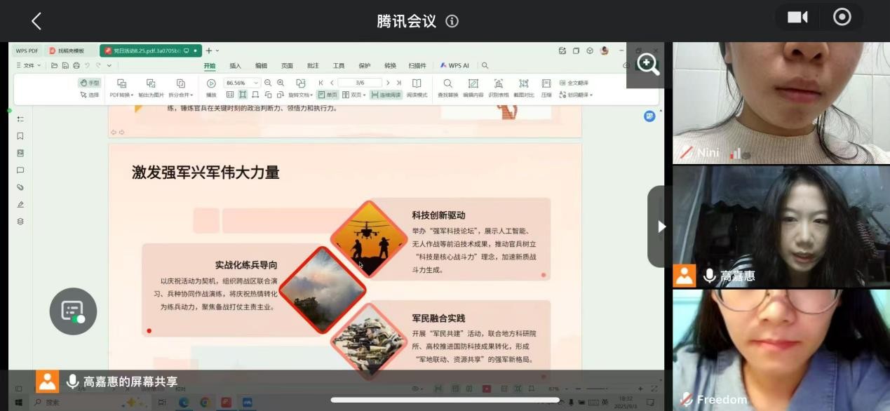 作为党支部成员,我们当以初心为坐标,在传承中汲取力量;以创新为动力,在岗位上履职尽责,为强军兴军的伟大事业注入基层党员的光和热。