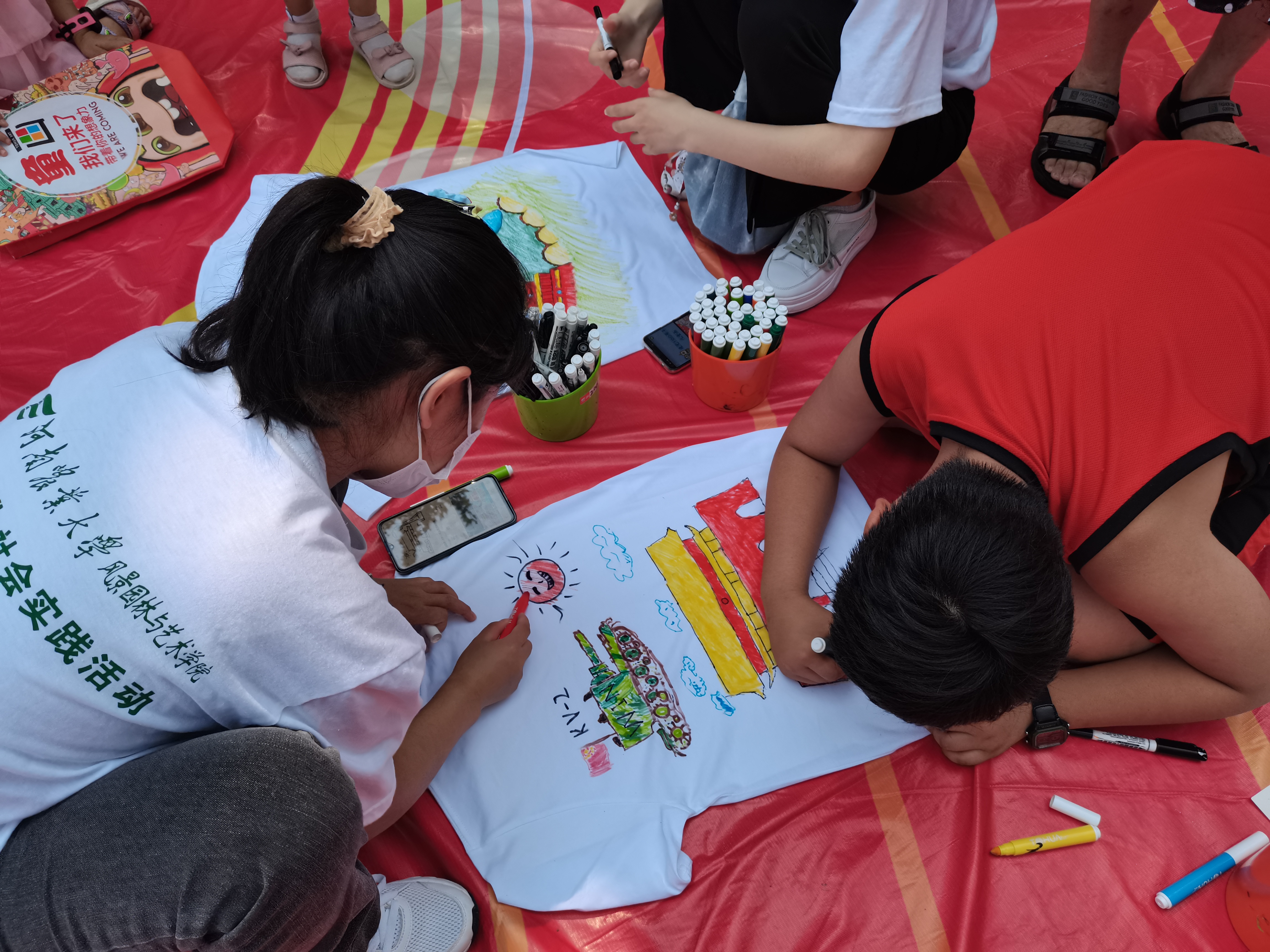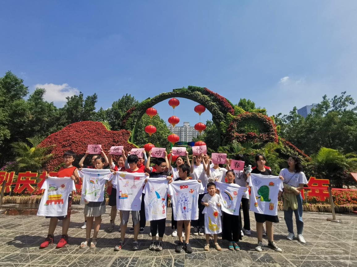 雷锋站志愿者组织带领暑期爱心课堂的孩子们于7月12日在文博广场开展“笔随心动,彩绘青春”活动。