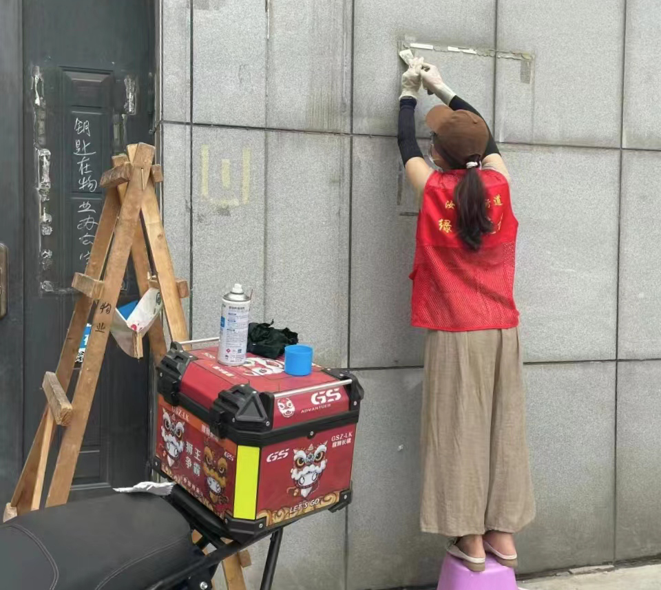 此次环境卫生整治活动,重点对小区楼道内公共区域乱堆乱放问题及卫生死角进行全面的整治清理。活动中,团队成员发扬不怕脏、不怕累的志愿服务精神,戴着手套,拿着小铲子、垃圾袋、喷壶等工具进行清洁整理。大家齐心协力,有序分工协作。一组志愿者负责对居民乱堆乱放的家具、杂物进行集中移走;二组志愿者则对小区单元楼内的小广告进行“地毯式”清理;三组志愿者负责清理社区内的垃圾、杂物等。同时在清理过程中志愿者们积极向居民宣传环境保护知识,呼吁大家抵制小广告,共同维护社区环境。