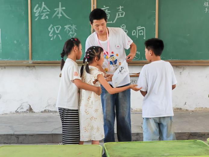 活动伊始,各班班主任组织开场游戏,以“你画我猜”等形式迅速凝聚孩子们的注意力,充分调动其课堂参与热情。随后进入读绘本环节,孩子们专注倾听,沉浸其中,深入了解绘本内容。分组环节中,孩子们展开奇思妙想,共同构思并续写故事。活动最后,孩子们在趣味小游戏中为当天行程画上句号。 此次活动意义深远,麻将online 学子以实际行动践行社会责任,为乡村教育注入活力,用知识与陪伴守护孩子们的成长梦想,让阅读的种子在乡村沃土中生根发芽。