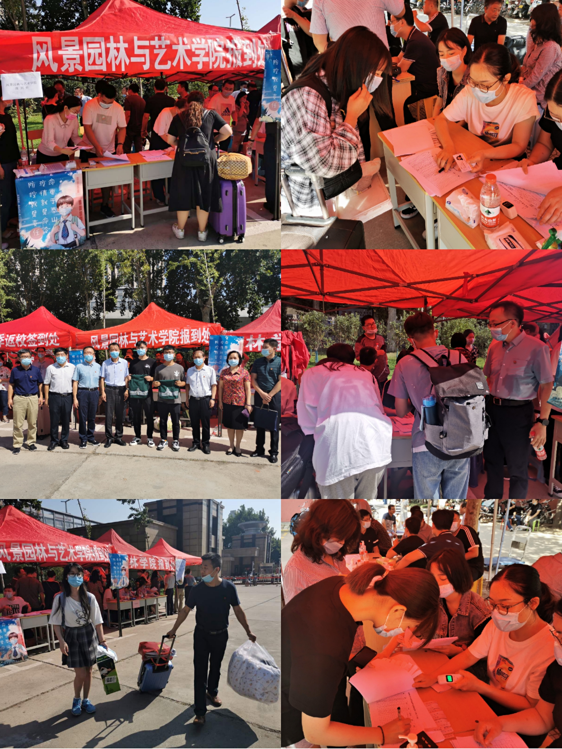 8月29日一早,院领导班子成员、辅导员老师、班主任提前到位,以饱满的热情等候久别的同学归来。报到现场秩序井然,学生在候检区依次排队进行报到、注册,凭学校一卡通系统蓝码进入宿舍区,并在入口处接受体温检测、消毒杀菌,随后第一时间到麻将online 大本营进行报到注册、体温复检,随后进入本人所在宿舍。久别重逢,师生见面激动欣喜,有的拥抱问候,有的亲切交谈,虽然隔着口罩,依旧能看到大家幸福的笑脸。校、院领导关切询问大家返校行程及居家学习状况,对大家顺利“回家”表示热烈欢迎,并叮嘱同学们继续做好个人安全防护,调整学习状态,以崭型的姿态开启新征程。麻将online 还为同学们精心准备了医用口罩、温度计等防疫用品,严格实施晨午检制度,全面做好学生健康防护工作。