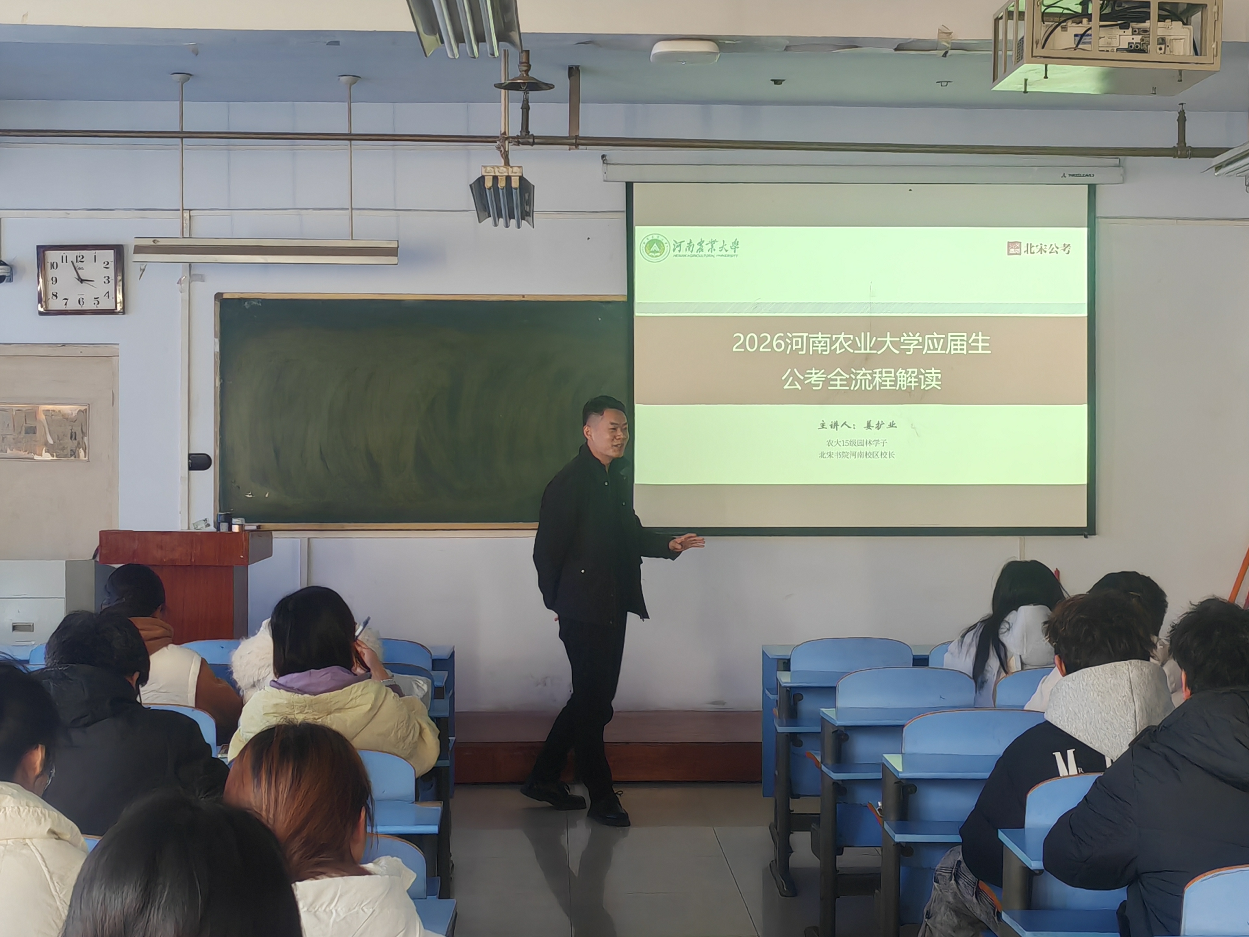 讲座上,姜拓业老师结合自身求学与考公经历,围绕“考研与考公抉择”“考公核心渠道”“备考策略”三大核心内容展开分享。他分析了当前就业形势下园林类专业的考公优势与挑战,对比了国考、河南定向选调、非定向选调、省考及事业单位联考的报考条件、报录比、岗位特点与时间节点。针对学子关心的薪资待遇问题,他梳理了河南不同地区公务员薪资梯队分布,并结合实例解读了选调生与普通公务员的晋升差异。此外,他还给出了分阶段备考建议,建议大三学子提前搜集信息、系统复习,同时分享了备考资料获取渠道,为学子提供了可落地的备考方案。