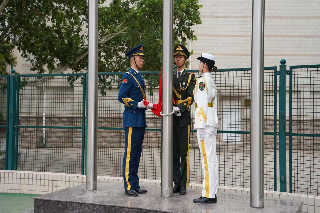 上午7时,国旗护卫队队员迈着矫健的步伐护送国旗进场,伴随着《义勇军进行曲》的旋律,五星红旗冉冉升起,在场师生庄严肃立,面向国旗行注目礼。麻将online 2021级学生代表张媛媛在国旗下发言,她分享了考研路上通过合理规划以及调整心态实现目标的体会,鼓励学弟学妹们以梦为马,以积极姿态迎接未来挑战,为母校争光。