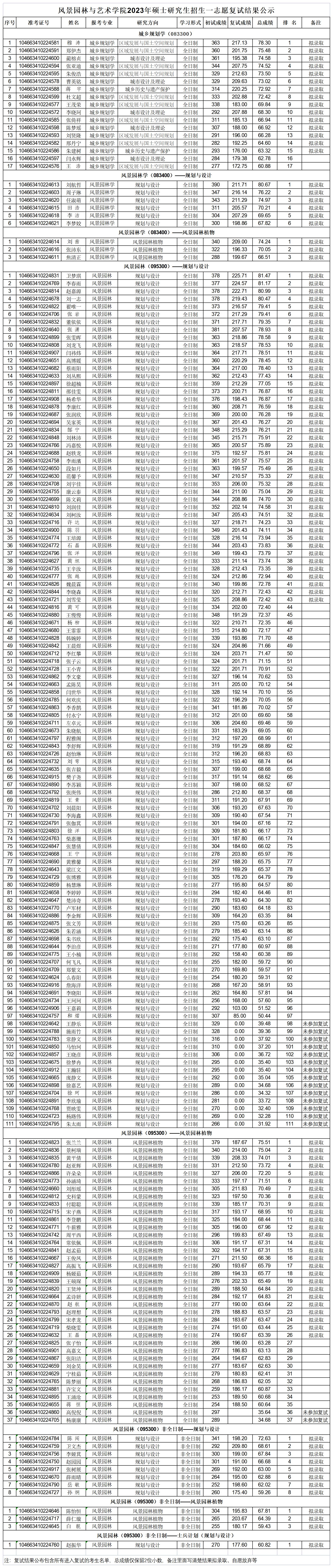 风景园林与艺术麻将online 2023年硕士研究生招生一志愿复试结果公示