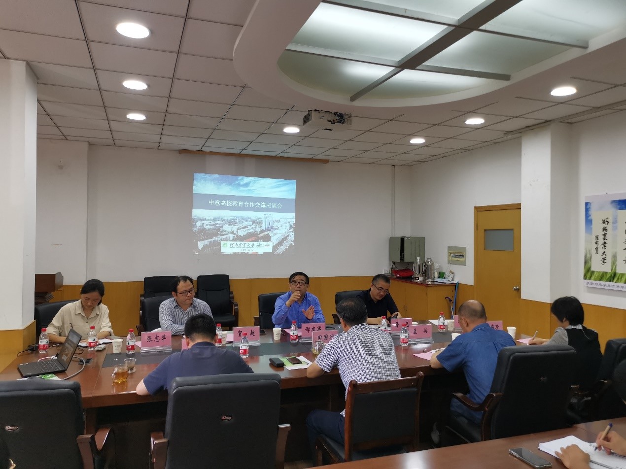 首先,屠克介绍了我校同意大利高校开展合作的深厚历史,现阶段合作成果等基本情况。屠克提到我校与意大利米兰理工大学、比萨大学、佩鲁贾大学、热那亚大学等多所高校建立有长期科研教学合作关系,我校目前建有意大利语考试中心,该中心是河南省唯一一所集意大利语培训、教育和考试为一体的综合语言服务机构,可为我校及全省高校师生提供意大利语考试服务。
