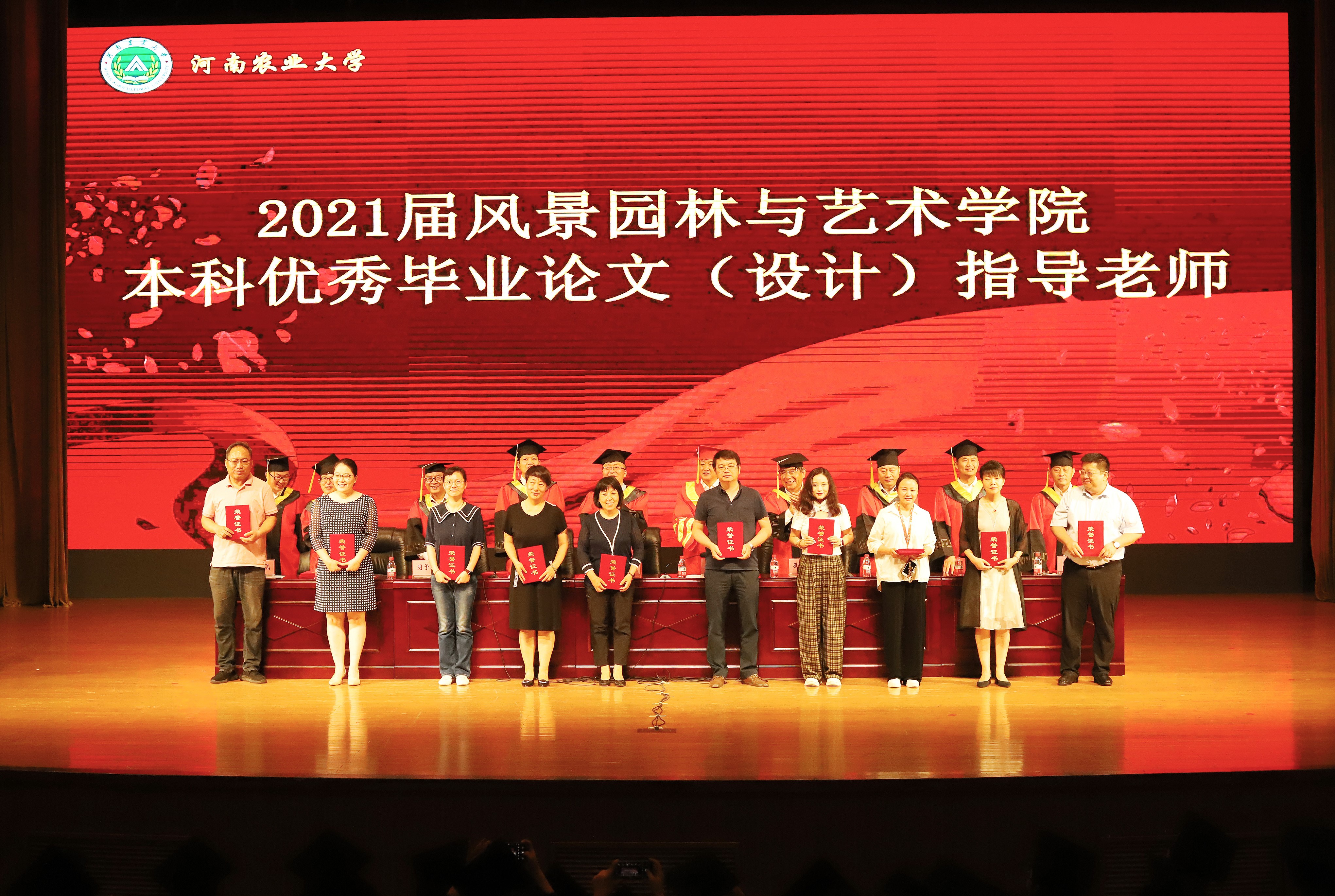 在欢快的乐曲声中,主席台上领导老师为毕业班先进班集体、优秀毕业生和优秀毕业论文(设计)作者、指导老师颁发荣誉证书。