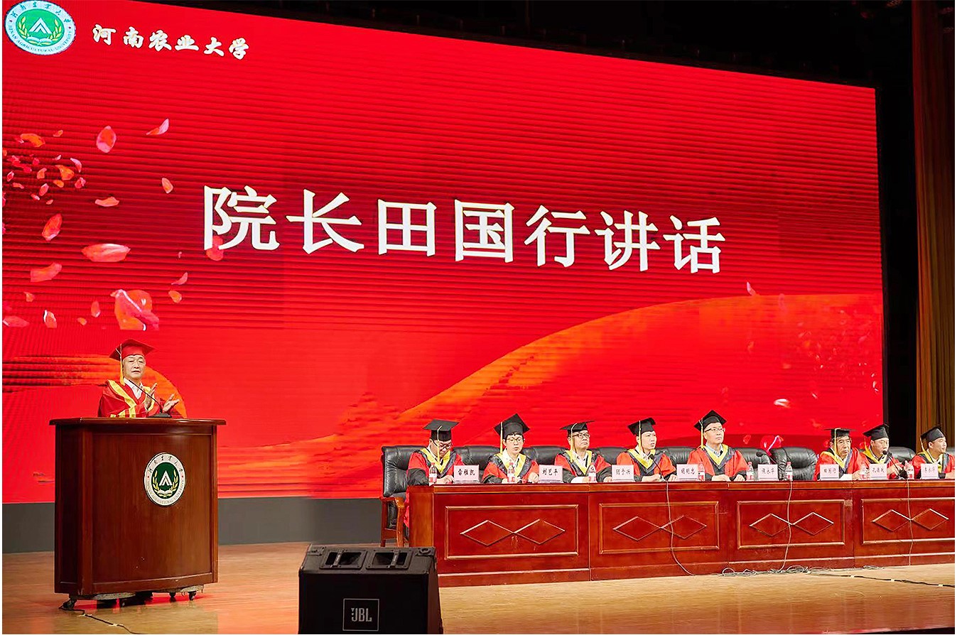院长、院学位委员会主席田国行发表题为《踔厉奋发,笃行致远》的演讲,向9名2020届毕业生和405名2021届毕业生表示最热烈的祝贺,向为毕业生成长成才倾注无数心血的各位老师和家长致以崇高的敬意和诚挚的问候。他指出,“时间之河川流不息,每一代青年都有自己的际遇和机缘”。同学们在校的一千多个日日夜夜,从稚气未脱走向成熟,从纯真少年长成意气风发的青年,在母校的怀抱里,度过了人生最美好的青春时光。尤其在令人难忘的2020年,同学们以各种方式勇敢地投身伟大的抗疫斗争,生动诠释了新时代大学生的社会责任感和担当精神,也让大家感悟了生命的价值、奋斗的意义。他对广大毕业生提出三点希望: