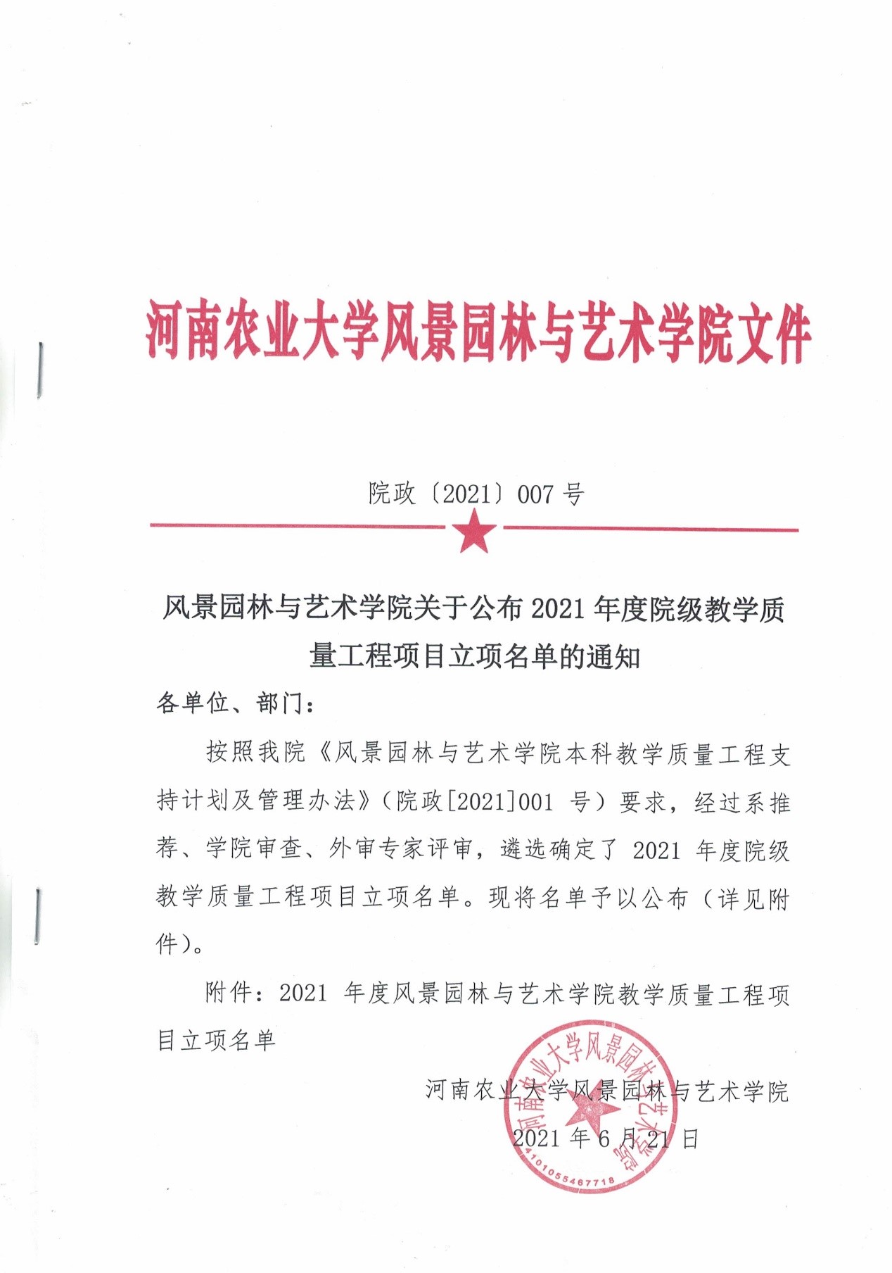 麻将online 成立“教学质量工程”项目考察小组,经过充分调研、论证,院党政联席会于2021年3月11日批准并签署了“关于印发《风景园林与艺术麻将online 本科教学质量工程支持计划及管理办法》(试行)的通知(院政【2021】001号)”文件,正式启动院级“教学质量工程”培育工作。