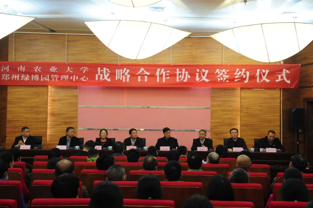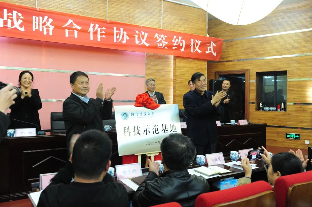 康相涛、司同义共同为河南农业大学科技示范基地挂牌,田国行、杜民签订河南农业大学与郑州绿博园管理中心战略合作框架协议。