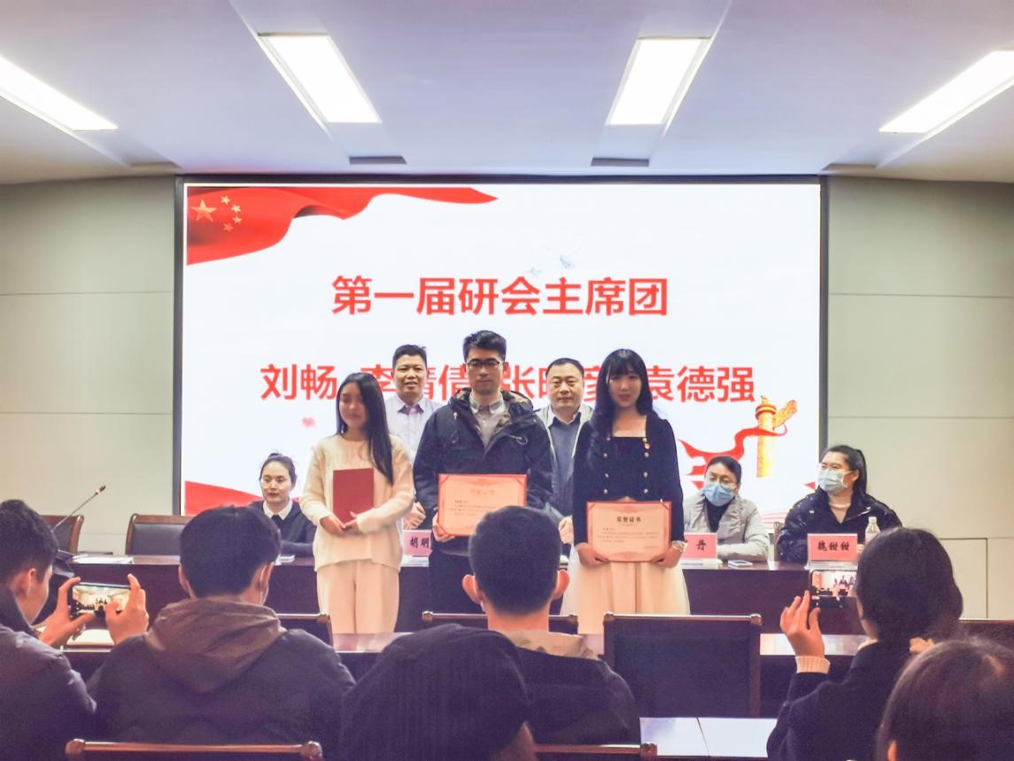 第一届研究生会主席团代表袁德强同学对过去一年研究生会工作做全面总结。随后,出席会议的领导、老师们为第一届研究生会干部颁发荣誉证书。