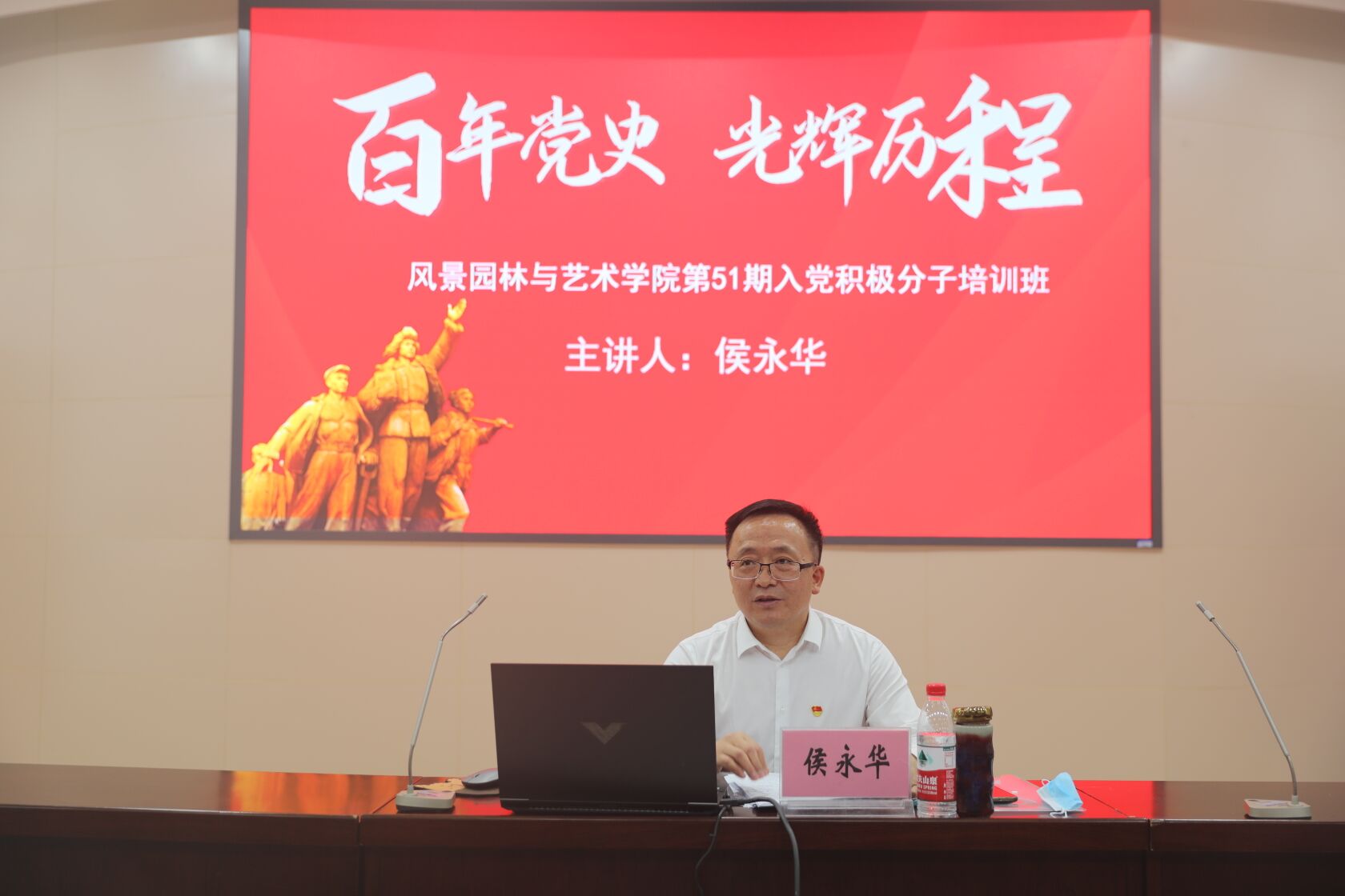 本次党课主题为《中国共产党历史——百年党史˙光辉历程》。侯永华由经典影视剧中党史的关键事件讲起,带领师生回顾了中国共产党从无到有、从小到大、从弱到强的过程。他结合党的历史上重要转折点的历次会议和重大事件,从创建时期、土地革命时期、抗日战争时期、解放战争时期和新中国等5个重要历史阶段,讲述了中国共产党领导、团结和带领全国人民夺取革命、建设、改革伟大胜利的光辉历程,帮助师生明晰了党的历史的主要脉络,学习了党不断革命的精神,汲取了党百年发展的红色力量。