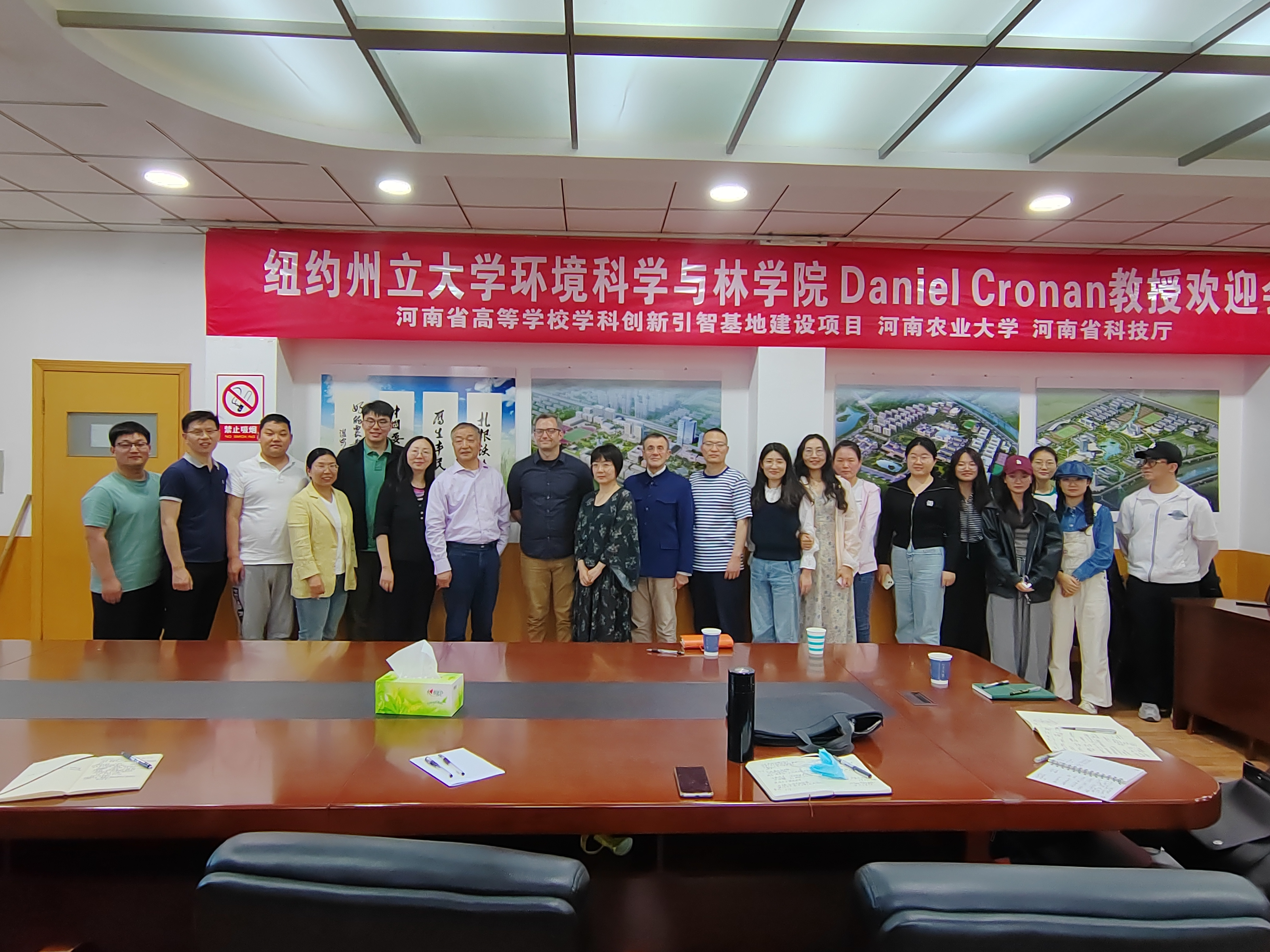 田国行教授首先就三位外国专家应邀到校进行学术交流表示衷心感谢和热烈欢迎,并简要介绍了学科创新引智基地的建设情况以及学科研究方向,并就下一步发展目标进行了详细阐释。宋培豪老师向外国专家详细介绍了河南厚重的历史文化风情,并就麻将online 风景园林学科在河南城市建设与发展过程中的重要作用以及相关学术成果进行了汇报。Paolo Sabbatini倪波路教授、Dan Cronan教授、陈倩教授充分肯定了科研团队的学术成果,并以自身视角提出学科发展方向的有效建议。随后,双方以漯河市生物多样性保护、公园体系规划、防灾避险绿地规划等项目为切入点,讨论了项目实施的可能性和研究内容的落地性,展望了国际化视野下中国城市问题的有效解决路径。