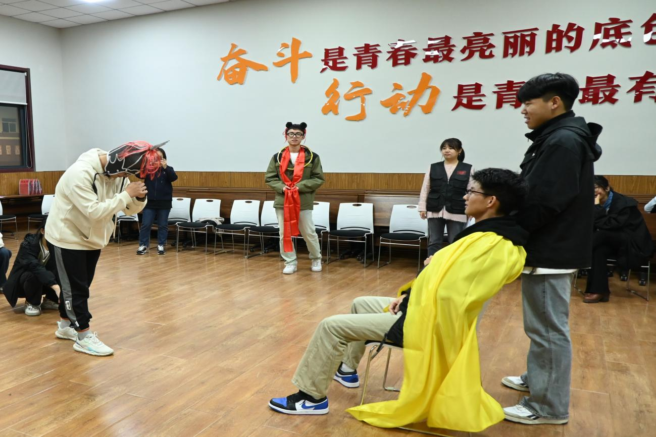 活动伊始,省团校老师带领学生们开展了团队趣味游戏,大家的热情顿时被点燃,游戏中,学生们齐心协力、团结协作,展示出团员青年昂扬拼搏的青春朝气。随后,学生们分成四个小组围绕《哪吒闹海》开展情景戏剧表演,该剧以神话故事《哪吒闹海》为背景,抒发表达了中国青年反对压迫与强权的革命精神,学生们用精湛的演技与真挚的情感将哪吒的不屈精神淋漓尽致地展现。活动最后,学生们就活动内容展开讨论,进一步强化了一心为民,无私奉献的精神。