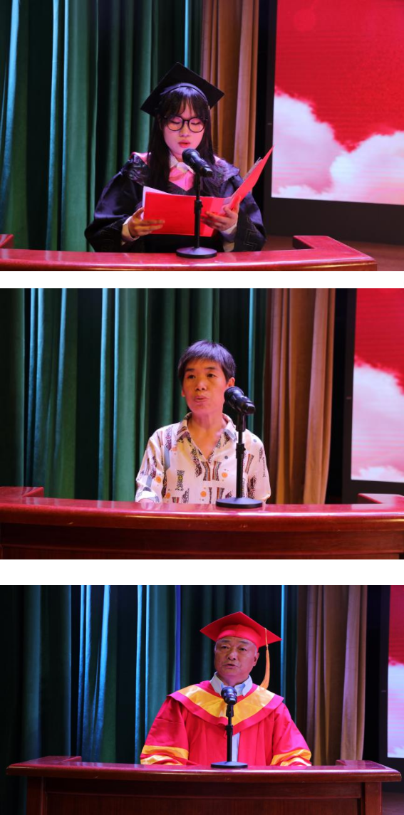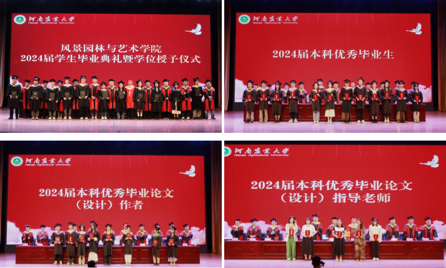副院长孔德政宣读了《关于表彰2024届本科优秀毕业生的决定》;副院长阴予兴宣读了《关于表彰2024届优秀毕业论文(设计)及优秀指导教师的决定》;副院长李永华宣读了《河南农业大学风景园林与艺术麻将online 关于学位授予的决定》。
