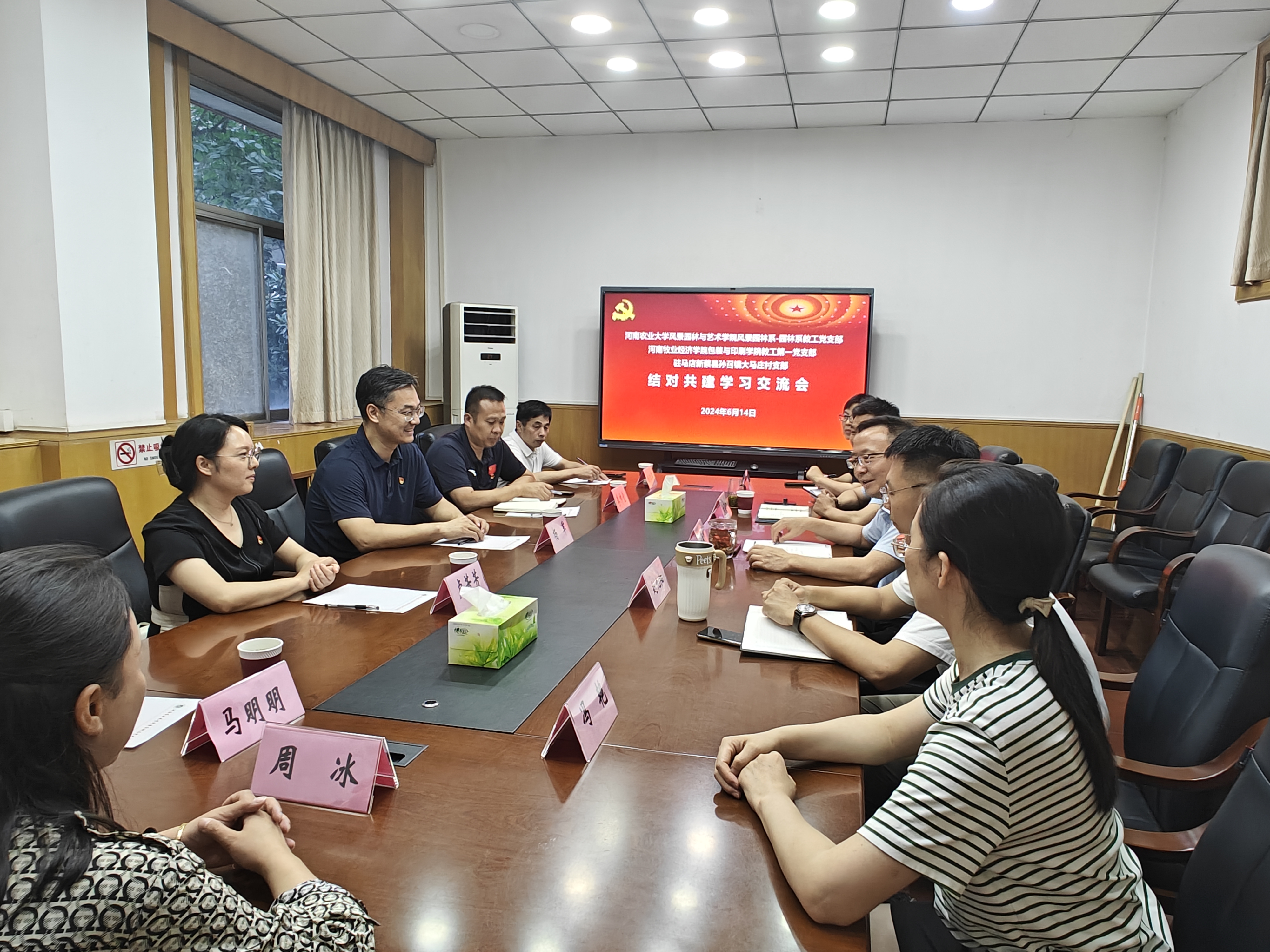 座谈会上,侯永华对杨军等一行的到来表示热烈欢迎。他从支部建设、学科发展、师资团队、乡村振兴项目建设案例和成效等方面详细介绍了麻将online 基本情况,他表示,麻将online 将立足资源优势和工作特色,紧密结合村里需求,找准结对共建契合点和着力点,助力大马庄村乡村振兴。刘保国就结对共建以来对大马庄村所做的一系列工作进行了详细说明,他指出,景园系利用现有实验设备采集大马庄风貌,并合成整村遥感影像,在影像图上对康养景观、地下温泉点等项目整体谋划。杨军对河南农业大学领导老师助力乡村振兴发展表示感谢,并就进一步推动党支部结对共建,实现乡村振兴大跨越等进行了深入交流。马明明结合实际谈了下一步大马庄的发展设想,恳请专家“把脉问诊,对症下药”,并代表大马庄村全体村民对河南农业大学景艺麻将online 作出的贡献表示感谢。
