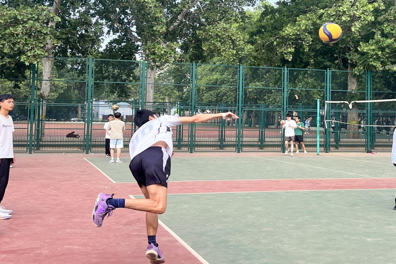 于文化路校区排球场特别举办本科毕业生师生友谊排球赛,院党委副书记赵九阳、教师代表及部分毕业生参与本次比赛。