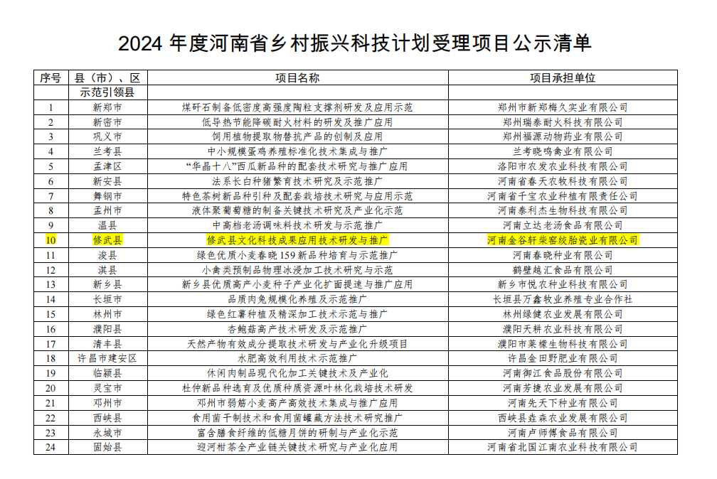 2024年7月9日,河南省科学技术厅官网发布2024年度河南省乡村振兴科技计划拟立项公示名单,麻将online