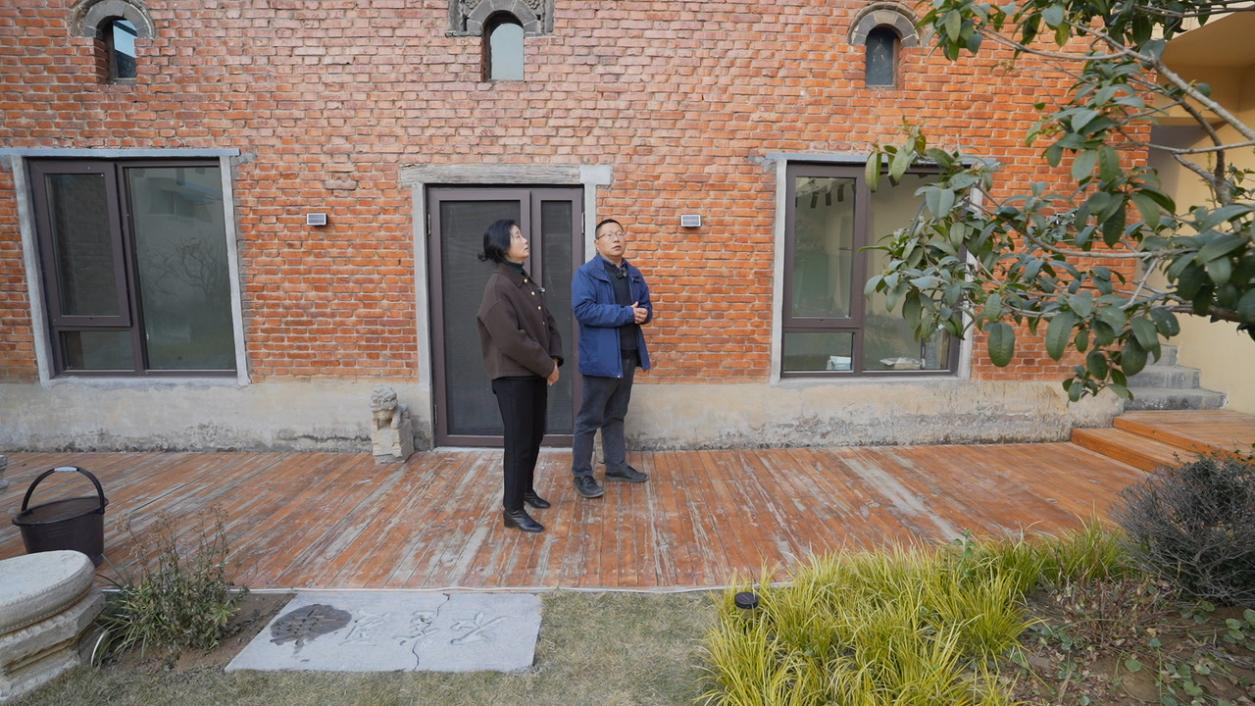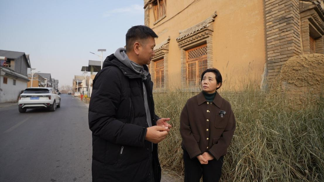 汪秀莉在村内与艺术家代表交谈,对院落改造前后的巨大变化表示赞叹,并对在乡村振兴过程中,通过城市资源反哺乡村、新村民入驻与引流的方式表示认可。