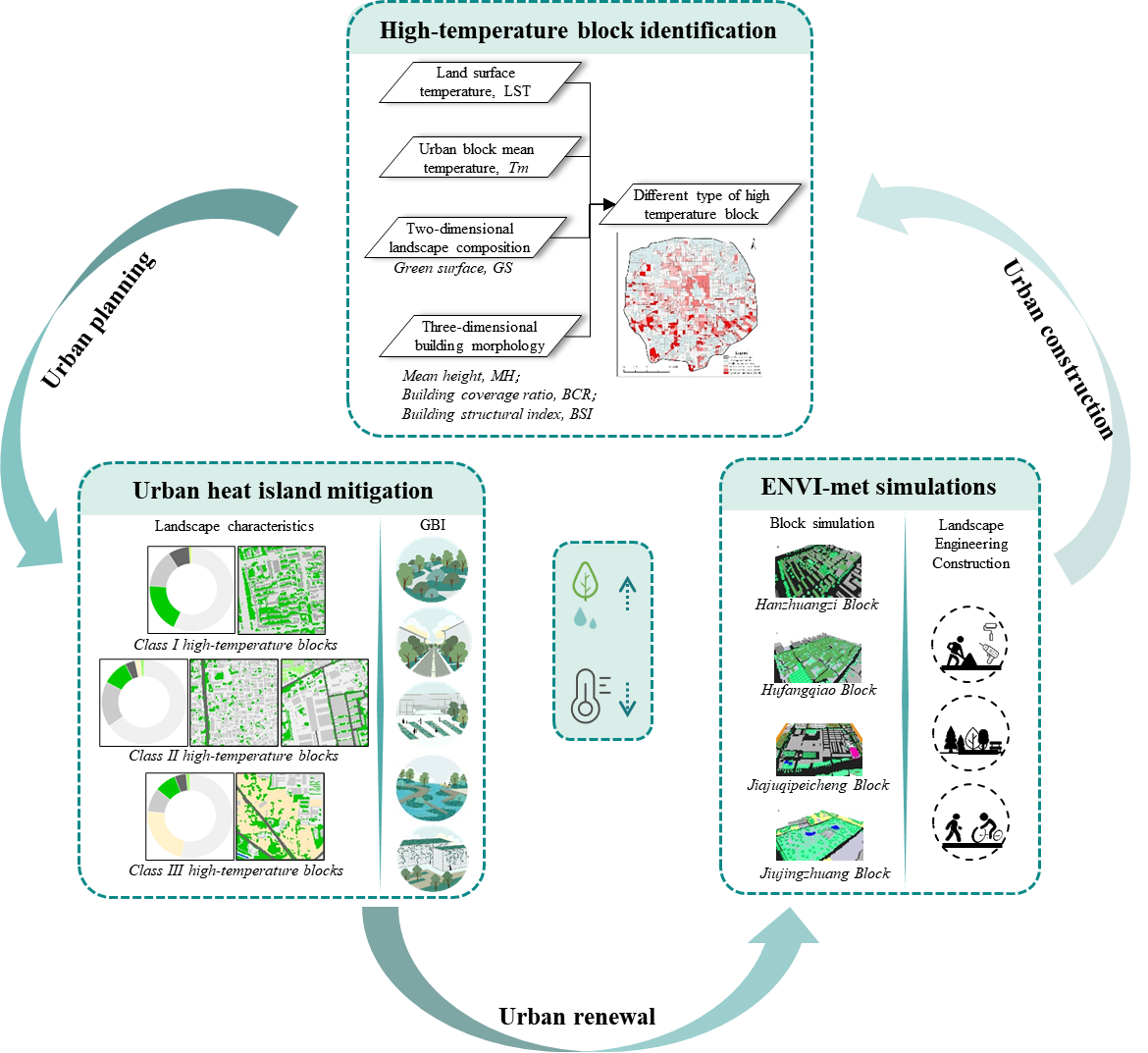 图2 基于蓝绿基础设施的城市街区热缓解规划-更新-建设循环框架