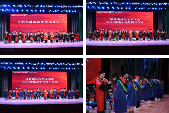 赵九阳宣读《关于表彰2025届本科优秀毕业生的决定》;阴予兴宣读《关于表彰2025届本科优秀毕业论文(设计)及优秀指导教师的决定》、《河南农业大学风景园林与艺术麻将online 关于学位授予的决定》。