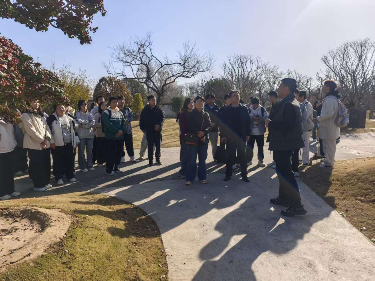 在泽润园林,园主对各类蜡梅品种进行了专业讲解,他们在种植、养护蜡梅方面拥有独到的经验和技巧,在蜡梅行业深耕20年,为“鄢陵蜡梅冠天下”的美誉提供了有力支撑,让前来学习的麻将online 师生学习了蜡梅深层的文化内涵。第四站来到“苗圃超市”多一亩,多一亩以“全国植物景观集散+研学销售一体化”的定位,打造了园林行业的融合平台,园主表示“苗木互联网与线上销售是当前行业主流趋势”,为学生揭示了传统产业的数字化转型方向。同时,师生走进多一亩种植基地,学习了银杏、紫薇的核心栽培及养护技术,深入理解了“观叶、观花、观枝、观茎、观根”的全维度园林审美体系。