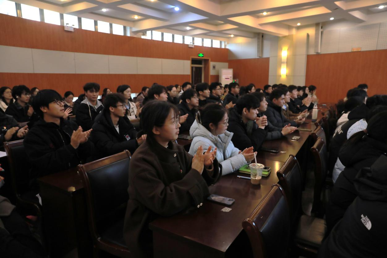 张怡雪作为学生党员代表发言。她结合自身成长经历,与新党员分享了三点感悟:一是要坚定理想信念,做“心中有光”的追梦者,将“绿水青山就是金山银山”理念融入专业实践;二是要练就过硬本领,做“脚下有路”的实干者,在生态修复、乡村振兴等领域深耕细研;三是要勇于担当奉献,做“肩上有责”的践行者,在服务师生、奉献集体中擦亮党员名片。